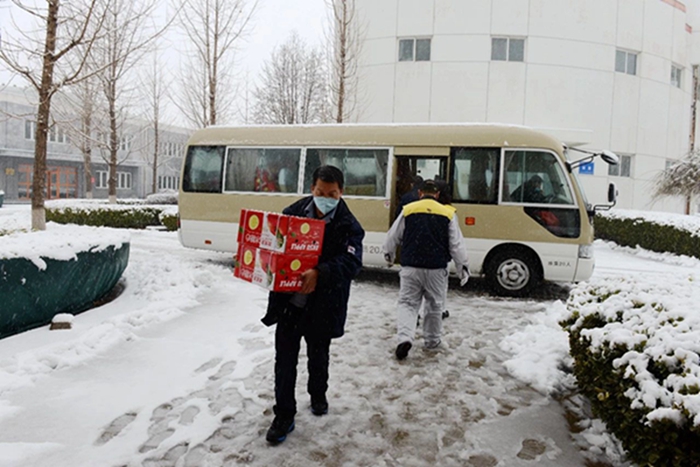2月14日,北京普降大雪,北化集團(tuán)工會、宣傳部安排三名同志,集團(tuán)辦公室安排經(jīng)驗(yàn)豐富的駕駛員,冒著紛飛的大雪,滿載慰問品,專程前往華騰化工園區(qū)和華騰橡塑公司進(jìn)行走訪慰問,為戰(zhàn)斗在疫情防控和復(fù)工復(fù)產(chǎn)一線的干部職工送上集團(tuán)黨委、工會“娘家人”貼心的關(guān)懷和溫暖。