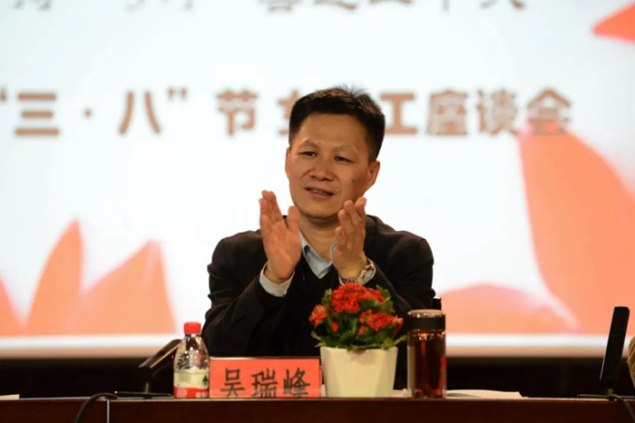 在認真聆聽了大家的發(fā)言后,吳瑞峰代表王國華書記向在座的女職工代表致以節(jié)日的祝賀,對她們在工作中的無私奉獻、辛勤工作表示充分肯定。