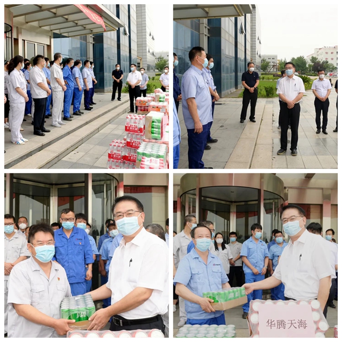 7月6日上午,陳宇一行來到集團(tuán)大興化工園區(qū),慰問園區(qū)內(nèi)華騰化工、華騰天海、試劑所、化工廠4家企業(yè)的干部職工。陳宇對一線職工冒酷暑、戰(zhàn)高溫,認(rèn)真負(fù)責(zé)的工作態(tài)度給予了高度肯定,對4家企業(yè)疫情防控、防汛、防暑降溫措施落實(shí)情況進(jìn)行了督促和檢查。