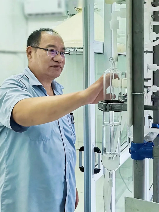 “電子級(jí)丁基卡必醇乙酸酯提純工藝研發(fā)”是試劑所承擔(dān)北京化工集團(tuán)服務(wù)首都功能,服務(wù)于微電子行業(yè)的科研開(kāi)發(fā)課題。電子級(jí)丁基卡必醇乙酸酯主要作為其中的溶劑應(yīng)用于電子漿料產(chǎn)品中。目前我國(guó)丁基卡必醇乙酸酯的生產(chǎn)廠家多生產(chǎn)工業(yè)級(jí)產(chǎn)品,無(wú)法滿足電子行業(yè)使用要求,高級(jí)別產(chǎn)品國(guó)內(nèi)幾乎沒(méi)有生產(chǎn)廠家,主要依靠國(guó)外進(jìn)口。試劑所致力于打破國(guó)外技術(shù)封鎖,成為國(guó)內(nèi)首家電子級(jí)丁基卡必醇乙酸酯的生產(chǎn)廠家。現(xiàn)由該工作室擔(dān)當(dāng)主力,承擔(dān)攻堅(jiān)克難任務(wù)。目前項(xiàng)目正按照預(yù)期穩(wěn)步進(jìn)行,丁基卡必醇乙酸酯項(xiàng)目從前期的調(diào)研、試驗(yàn)摸索到后期的設(shè)計(jì)圖紙、精餾塔的組裝,管道的連接再到現(xiàn)在的中試環(huán)節(jié),工作中的每一個(gè)步驟都是工作室人員親力親為,每一個(gè)細(xì)節(jié)都凝結(jié)著工作室人員的心血。