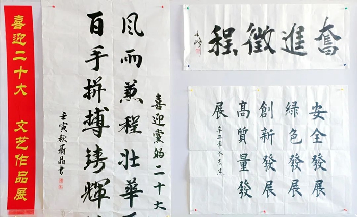 此次展覽,從各單位上交的各類(lèi)作品中精選出書(shū)法作品16件,攝影作品21件,繪畫(huà)作品7件及手工藝作品10件進(jìn)行現(xiàn)場(chǎng)展示。遒勁有力的書(shū)法作品,美不勝收的攝影作品和繪畫(huà)作品,以及不同風(fēng)格的手工藝作品洋溢著北京化工集團(tuán)干部職工期盼黨的二十大勝利召開(kāi)的喜悅心情,也充分展現(xiàn)出大家豐厚的文化素養(yǎng)和多彩的業(yè)余文化生活。