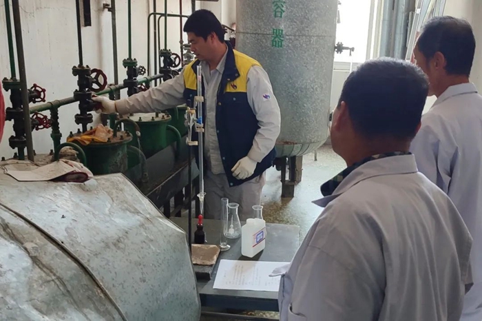 開爐前,華騰化工黨總支副書記、總經(jīng)理李勝強專門來到鍋爐房檢查指導工作,并慰問一線干部職工。李勝強強調(diào),要牢固樹立安全第一思想,認真落實化工集團疫情防控要求,做好個人防護,確保鍋爐安全啟動,確保鍋爐崗位正常輪換運行。