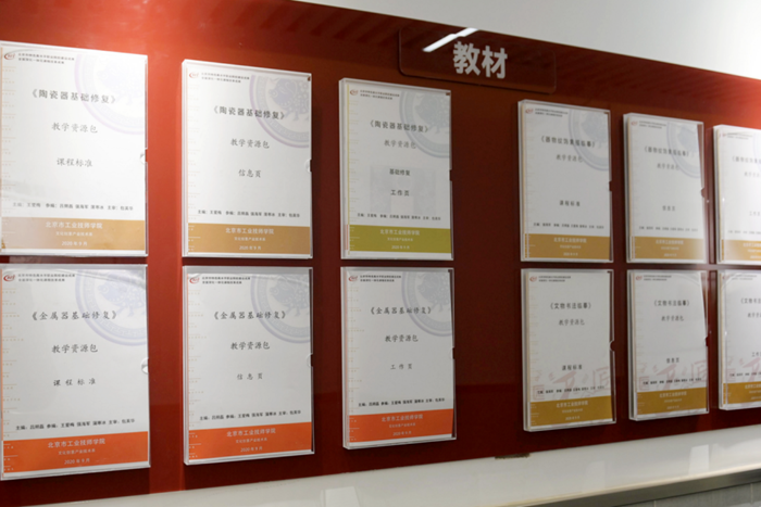 沒(méi)有成型的教材,王愛(ài)梅等老師就與這些特聘專(zhuān)家和技能大師一起探討,與團(tuán)隊(duì)教師合作搭建課程體系。現(xiàn)已完成10門(mén)一體化課程標(biāo)準(zhǔn)和教材、學(xué)材的開(kāi)發(fā),并打通了中高級(jí)直升人才培養(yǎng)機(jī)制,同時(shí)完成主編《陶瓷器基礎(chǔ)修復(fù)》《陶瓷器文物修復(fù)》,參編《金屬器修復(fù)》等課程資源包。