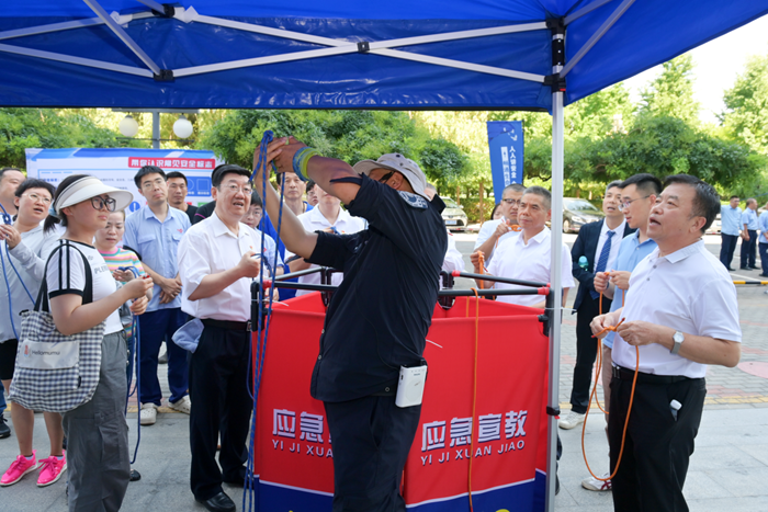 電動自行車電池的穿刺實驗,讓大家實際感受到了電池在擊穿狀態(tài)下的危險程度,提示了電動自行車應規(guī)范購置、不私自改裝,電瓶及電動自行車不進樓入戶,要停放在集中停放、充電場所;煙熱環(huán)境模擬逃生讓體驗者切身感受到“暢通生命通道”的意義,深刻認識到日常工作中維護好“消防疏散指示標識”在關鍵時刻能救命;擁擠踩踏應急處置讓大家在緊急疏散的過程中避免受到更多的傷害,掌握安全繩扣的栓系方法便于快速從高處降至安全地帶,心肺復蘇及AED的正確使用讓大家知道如何自救互救,出真水滅真火讓大家熟練掌握了初期火災的應對方法。