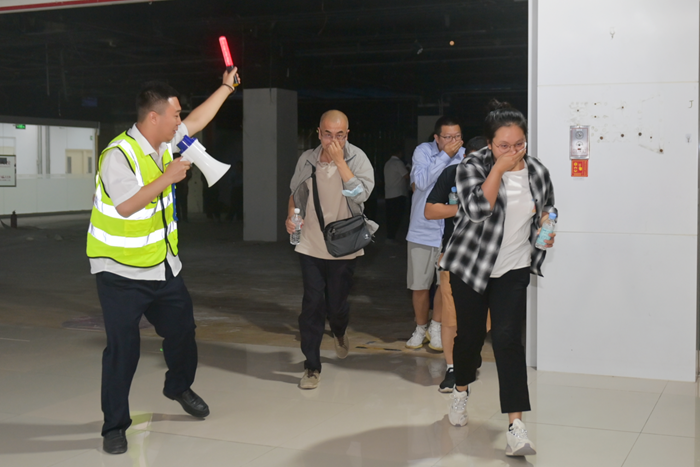 園區(qū)模擬突發(fā)火情。在第一時間發(fā)現(xiàn)“火情”后,園區(qū)立即啟動應(yīng)急預(yù)案,組織撲滅初期火情,組織人員疏散。整個過程訓(xùn)練有素,專業(yè)化程度高。