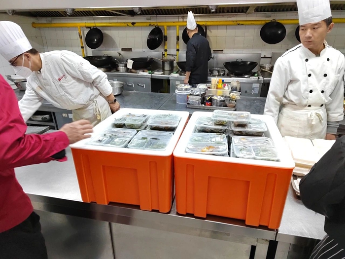 為此,賓館早在5月下旬就統(tǒng)籌協(xié)調(diào)廚師人員、配菜人員,并根據(jù)每日不同的菜譜,具體安排烹飪時間和順序。此外,賓館還對配送路上花費的時長進行具體測算,同時明確要求,辦公室和后勤人員要在保證安全衛(wèi)生的條件下,充實到分裝配送一線,最大限度確保每一份盒飯,在中午休息時第一時間送達到用餐人員手中。當賓館的送餐人員將盒飯配送至比賽現(xiàn)場,看著賽事人員大口大口吃著冒著熱氣的飯菜時,內(nèi)心涌起無比的自豪和欣慰。