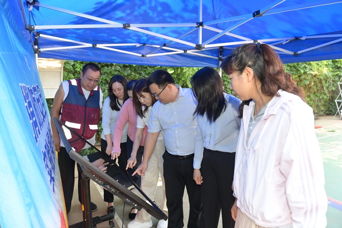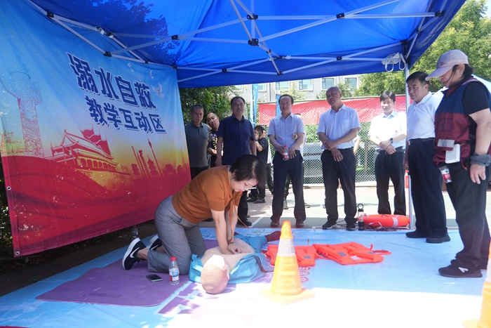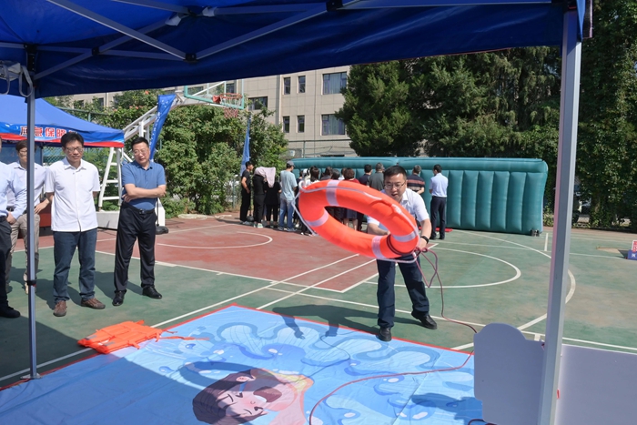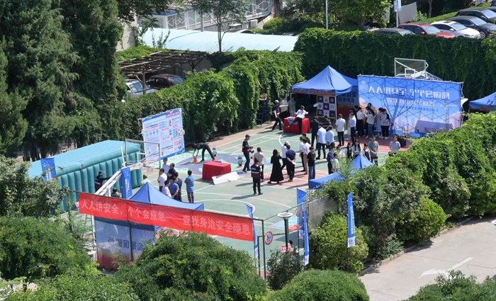 演練結(jié)束后,舉辦方在大廈籃球場開啟安全咨詢體驗(yàn)活動。整個活動共設(shè)置了6個項目,分別為擁擠踩踏應(yīng)急處置體驗(yàn)區(qū)(充氣帳篷)、消防隱患排查試驗(yàn)區(qū)、電動車電池穿刺爆燃體驗(yàn)裝置、溺水自救互救教學(xué)培訓(xùn)區(qū)、醉酒交通AR模擬體驗(yàn)、安全標(biāo)志互動區(qū)?;顒蝇F(xiàn)場氣氛熱烈,盡管天氣炎熱,但絲毫沒有減弱大家體驗(yàn)掌握應(yīng)急技能的熱情。