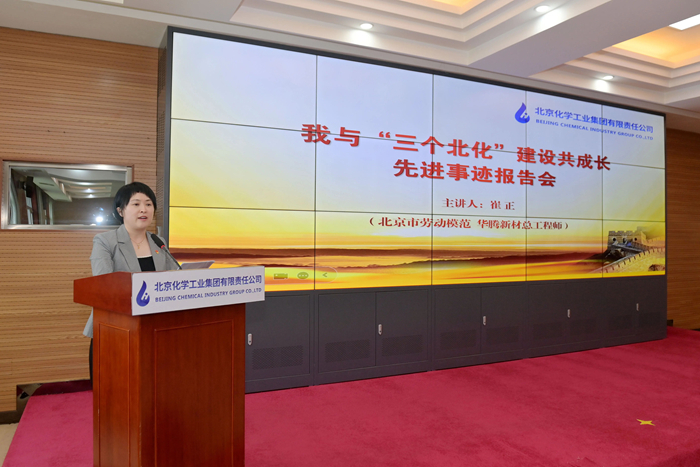 在先進(jìn)事跡報(bào)告環(huán)節(jié),市勞動(dòng)模范,華騰新材總工程師崔正攜《以使命為船,以熱愛(ài)為帆,在時(shí)代洪流中奮勇?tīng)?zhēng)先》;市模范集體代表,試劑所總經(jīng)理助理、質(zhì)量檢驗(yàn)部部長(zhǎng)孟憲冬以《傳承工匠精神,助力“三個(gè)北化”,試劑所質(zhì)量檢驗(yàn)部的奮進(jìn)之路》為題,圍繞個(gè)人成長(zhǎng)、科研開發(fā)、團(tuán)隊(duì)建設(shè),自信講述與北京化工共同成長(zhǎng)的點(diǎn)點(diǎn)滴滴。