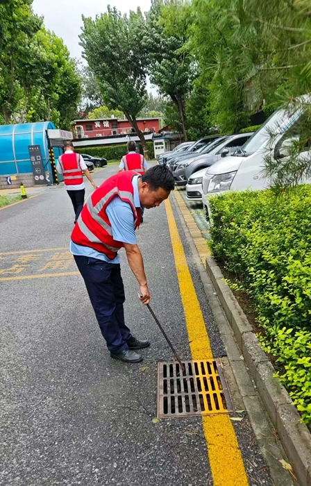 在接到暴雨紅色預(yù)警后,各事業(yè)部迅速行動,對樓宇屋面、排水管道、下水井等進(jìn)行細(xì)致檢查,及時清理雜物,同時各事業(yè)部迅速將防汛物資補(bǔ)充到可能發(fā)生汛情的低洼位置,以便出現(xiàn)險情第一時間救援。