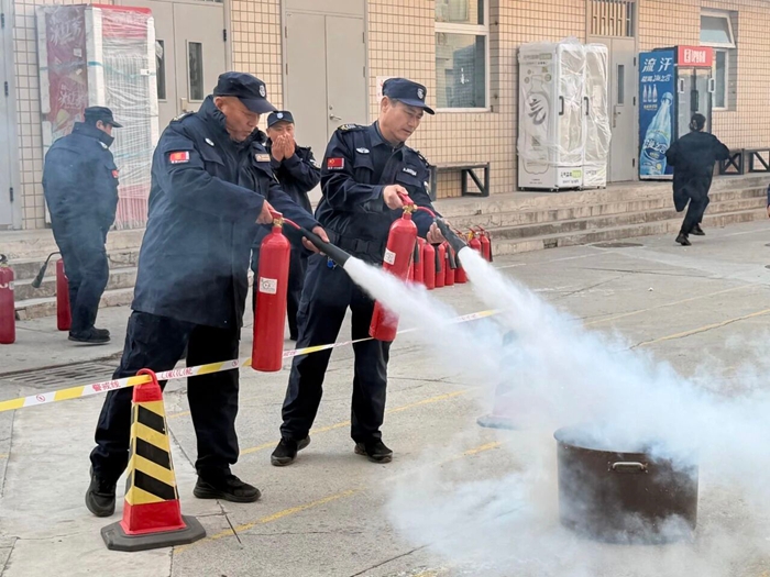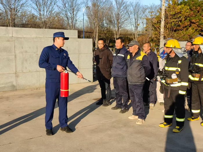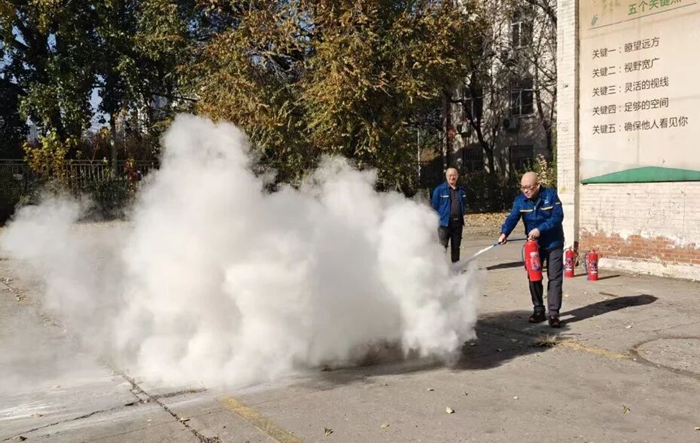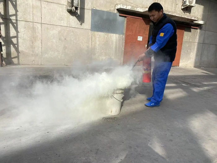 “提、拔、握、壓——對準火源根部掃射!”在演練現(xiàn)場,安全員手持滅火器,結合冬季干燥、火情易蔓延的特點,向員工講解操作要領,強調冬季滅火器維護重點。