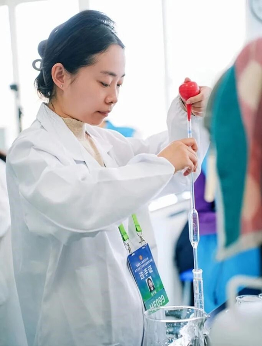 經(jīng)過激烈角逐,竇子璇在集團(tuán)競賽中獲得第一名,拿到全國總決賽“入場券”。在決賽環(huán)節(jié),面對高強度考核,竇子璇心態(tài)沉穩(wěn),處理樣品時,她手持移液管姿勢標(biāo)準(zhǔn),精準(zhǔn)移取;儀器操作中,她熟練調(diào)試參數(shù),動作流暢;數(shù)據(jù)分析階段,她嚴(yán)謹(jǐn)推導(dǎo),不放過細(xì)微誤差。