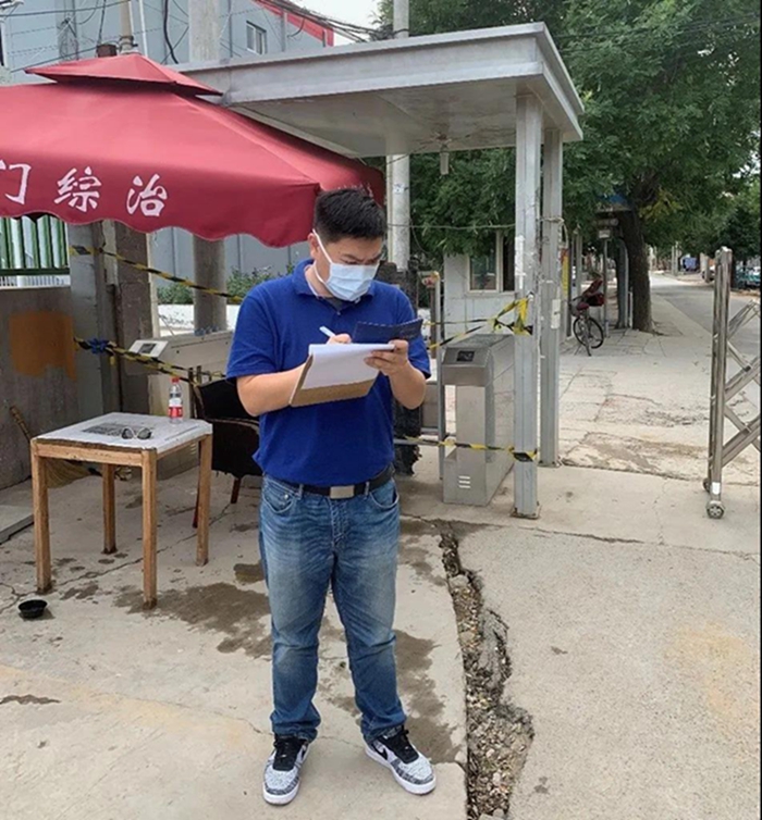 新發(fā)地批發(fā)市場(chǎng)是疫情的源發(fā)地,作為離此較近村子的下沉干部,我們勇挑抗疫重?fù)?dān)。雖然是二次下沉,看似都是老工作,但責(zé)任與壓力卻與第一次不可同日而語。為了控制住疫情,我們跟隨村委工作人員一起調(diào)整狀態(tài),認(rèn)真摸底排查。在那最緊張的日子里,我和同事們幾乎盯在卡口處,我們分工合作,測(cè)體溫、登記、查驗(yàn)出入證……一天下來,真是腰酸背痛,但在我們的努力下,村民們自我防護(hù)意識(shí)不斷增強(qiáng),絕大部分村民都能主動(dòng)配合我們的檢查,我們的工作也輕松了許多。