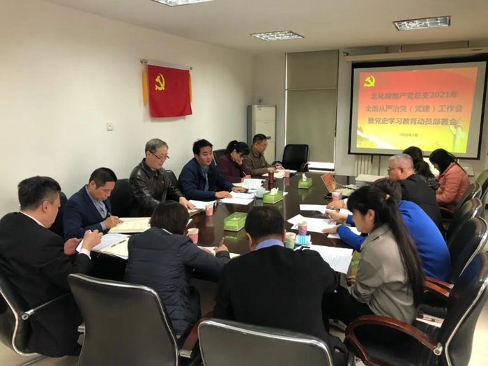 3月18日,北化房地產黨總支召開黨史學習教育動員部署會,黨總支書記、董事長、黨史學習教育領導小組組長王強作動員講話,公司黨總支委員、基層黨支部支委會全體成員參加會議。