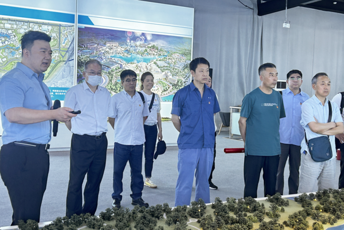 在展廳內(nèi),全體黨員干部通過(guò)觀看沙盤(pán)、展板和宣傳片,詳細(xì)了解了北京城市副中心建設(shè)的總體規(guī)劃理念、戰(zhàn)略定位、發(fā)展目標(biāo)、空間布局、功能定位和城市特色等綜合規(guī)劃情況,以及北京城市副中心未來(lái)在城建、交通、文化、生態(tài)、旅游等方面的周密規(guī)劃。