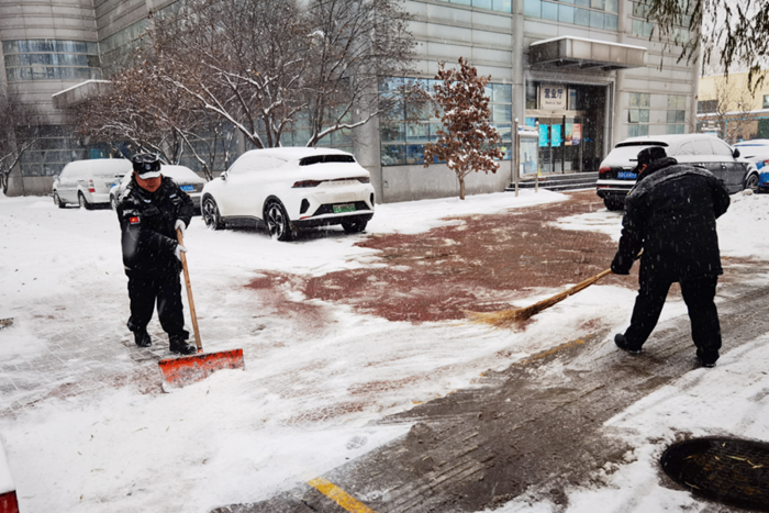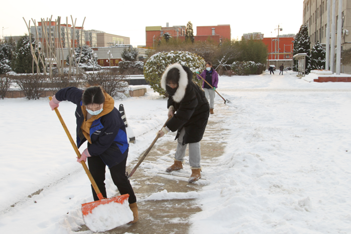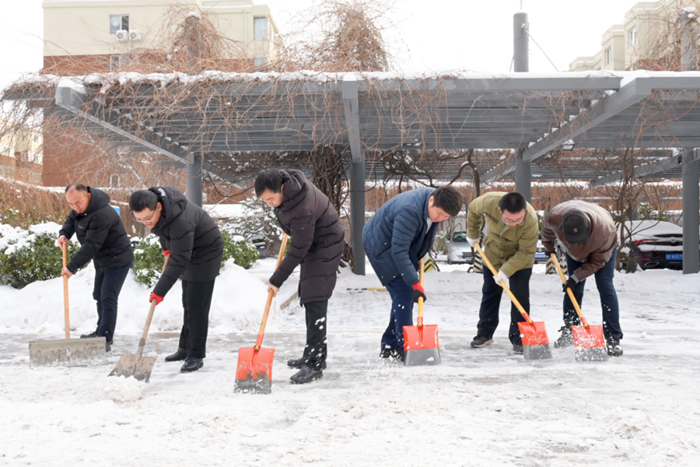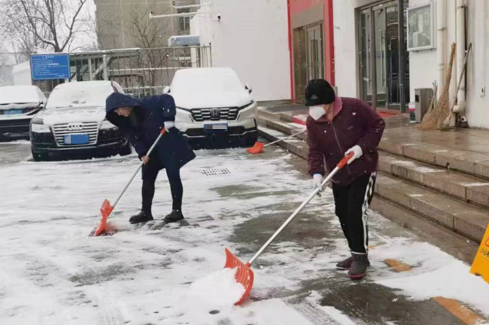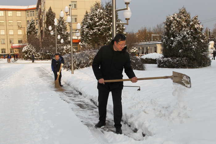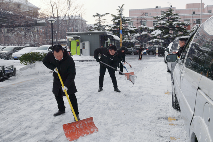 剛到單位的干部職工,紛紛拿起掃帚、鐵鍬,加入到掃雪除冰大“會(huì)戰(zhàn)”的隊(duì)伍中。大家齊心協(xié)力、現(xiàn)場一片熱火朝天,干凈整潔的道路很快清掃出來,保證了干部職工出行安全。