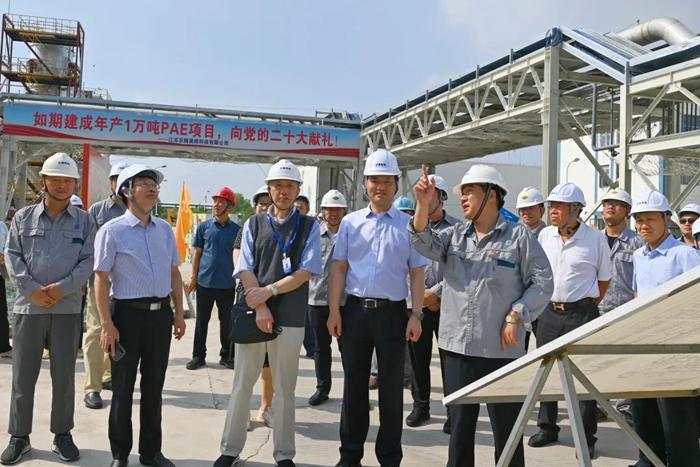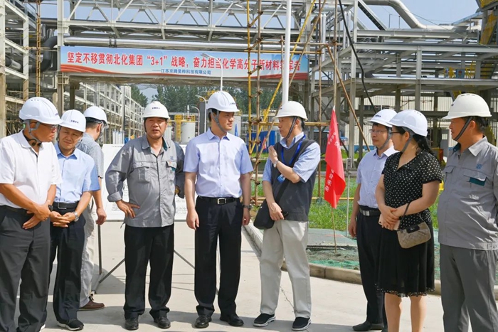 月19日,董事會一行來到江蘇京騰昊樺公司,現(xiàn)場考察年產(chǎn)1萬噸聚芳醚樹脂(PAE)項目建設(shè)情況。PAE項目是國家強基工程項目,是北京化工集團推進“3+1”業(yè)務(wù)的重要載體,是集團年度40項重點任務(wù)之一。