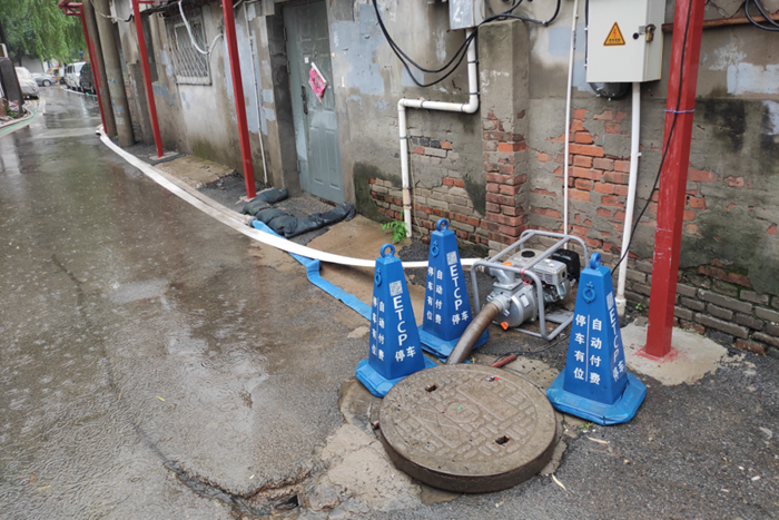 7月29日,在暴雨來襲時刻,北搪公司領(lǐng)導(dǎo)班子和干部職工連夜值守重點(diǎn)點(diǎn)位。大郊亭3號院是老舊平房宿舍區(qū),地勢低洼,也是朝陽區(qū)防汛重點(diǎn)點(diǎn)位。為應(yīng)對此次強(qiáng)度大持續(xù)時間長的極端暴雨天氣,公司在3號院安裝了4臺汽油排水泵、4臺小型電器排水泵,鋪設(shè)排水管線800米,準(zhǔn)備沙袋50個,清理排水雨篦子9個,由于思想高度重視、前期準(zhǔn)備工作充分,3號院平安度過這輪強(qiáng)降雨。