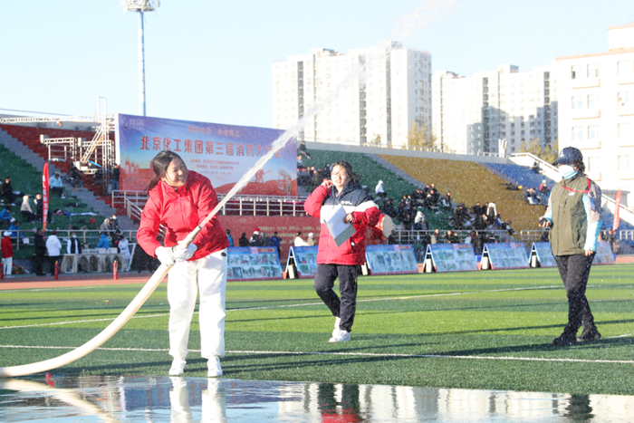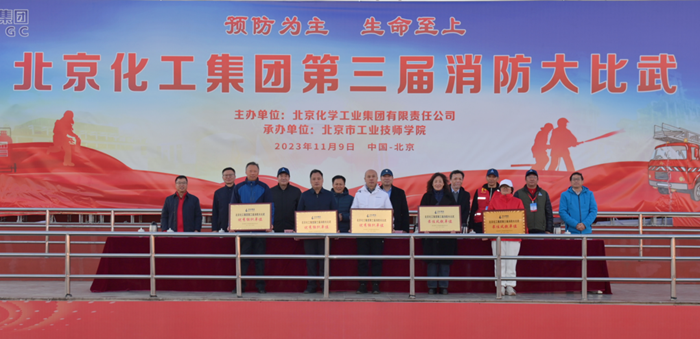 在全國第32個“119”消防宣傳日當天,北京化工集團第三屆消防大比武在技師學院舉辦,黨委書記、董事長陳宇致開幕詞,黨委副書記吳瑞峰主持開幕式并致閉幕詞,黨委常委、副總經(jīng)理韓寶海主持閉幕式,來自全系統(tǒng)的350多名職工參加大比武。