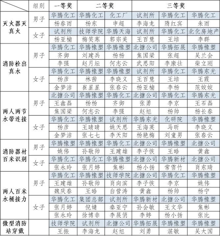 本次大比武各項目設(shè)一等獎一名,二等獎兩名,三等獎三名。經(jīng)過激烈的角逐,有17名員工獲得一等獎;34名員工獲得二等獎;51名員工獲得三等獎;各單位獲得最佳組織獎、最佳風貌獎、最佳拼搏獎、專業(yè)示范獎榮譽。