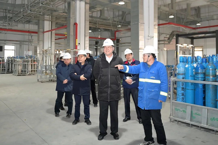 陳宇首先走進(jìn)北普工廠,深入生產(chǎn)一線了解氣體保供情況 。陳宇詳細(xì)查看了北普工廠灌裝生產(chǎn)線運行情況、氧氣瓶安全裝卸、運輸和各類氣瓶的存儲情況。詳細(xì)了解了節(jié)日期間首都各大醫(yī)院需求情況及保障措施。叮囑一線干部職工要始終把安全生產(chǎn)放在首位,堅決扛起節(jié)日期間安全生產(chǎn)主體責(zé)任,同時要加強調(diào)度,為首都各大醫(yī)院提供及時便捷的保障服務(wù),確保首都市民度過一個安全健康的春節(jié)。