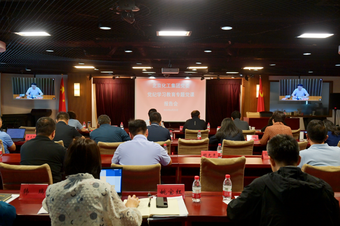 為扎實推進黨紀學習教育走深走實,6月25日上午,北京化工集團黨委舉辦黨紀學習教育專題黨課報告會,黨委書記、董事長陳宇以《扎實推進黨紀學習教育 以強有力紀律建設推進化工集團高質量發(fā)展》為題講專題黨課,黨委副書記、董事、總經(jīng)理楊旭輝主持會議。