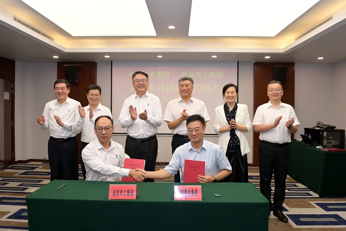 化工集團與排水集團有著長期緊密合作基礎(chǔ),早在本世紀初,雙方就在污水處理領(lǐng)域就生產(chǎn)原料采購供應、儲存使用以及技術(shù)創(chuàng)新等方面開展了一系列戰(zhàn)略合作,取得了重要成果。此次簽署戰(zhàn)略協(xié)議,雙方將發(fā)揮各自資源和產(chǎn)業(yè)優(yōu)勢,在藥劑供應與檢測、防水新材料研發(fā)及產(chǎn)業(yè)化、技能人才培養(yǎng)、危險化學品安全管理、共同投資等五大領(lǐng)域開展深度合作,共同打造市屬國企協(xié)同創(chuàng)新標桿,為首都城市基礎(chǔ)設(shè)施安全運行和產(chǎn)業(yè)升級提供堅實支撐。