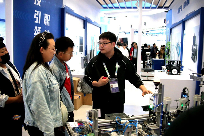 在展區(qū)現(xiàn)場,技師學院自主培養(yǎng)的世界技能大賽金牌選手,結合自身成長經(jīng)歷,向觀眾講述“技能成才技能報國故事”,展現(xiàn)了青年高技能人才傳承匠心、為國爭光的卓越風采。