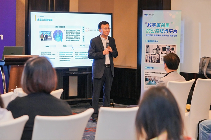 論壇中,北化生科黨總支書記、總經(jīng)理申海成從專業(yè)運營空間、專業(yè)運營團隊和專項產業(yè)基金等多個方面,深度聚焦以核酸藥物為代表的五大細分賽道,向與會者詮釋“國際生物島”獨有的“1公里科學家鄰里”生態(tài),并通過高標準技術平臺、專項基金、技術審評、專屬空間、高科技人才和公共服務六大生態(tài)要素協(xié)同,系統(tǒng)闡釋從“0-1-N”的產業(yè)化路徑。